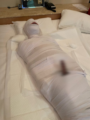 縄やラップでの全身拘束は経験があったようだけれど、弾性包帯でのマミーフィケーションは初✨👏🏻